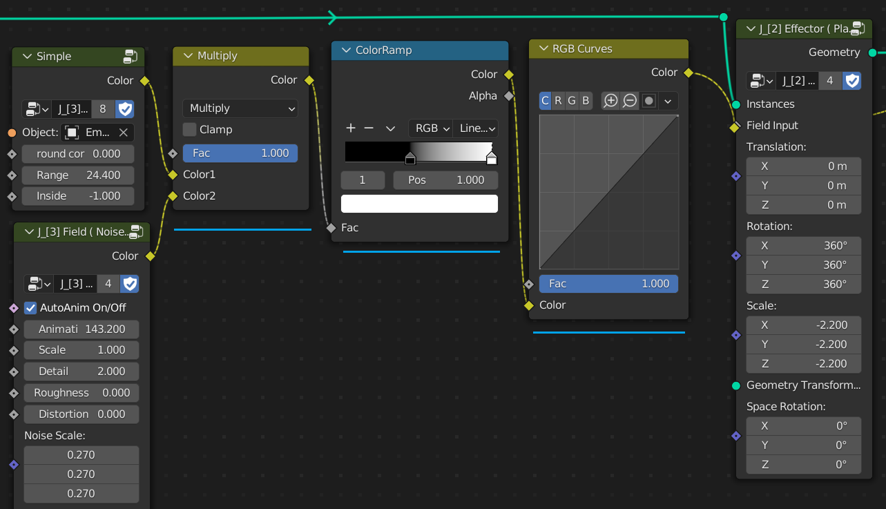 所有场节点都可以组合和更多调整,如RGB Mix、ColorRamp、RGB Curves等。